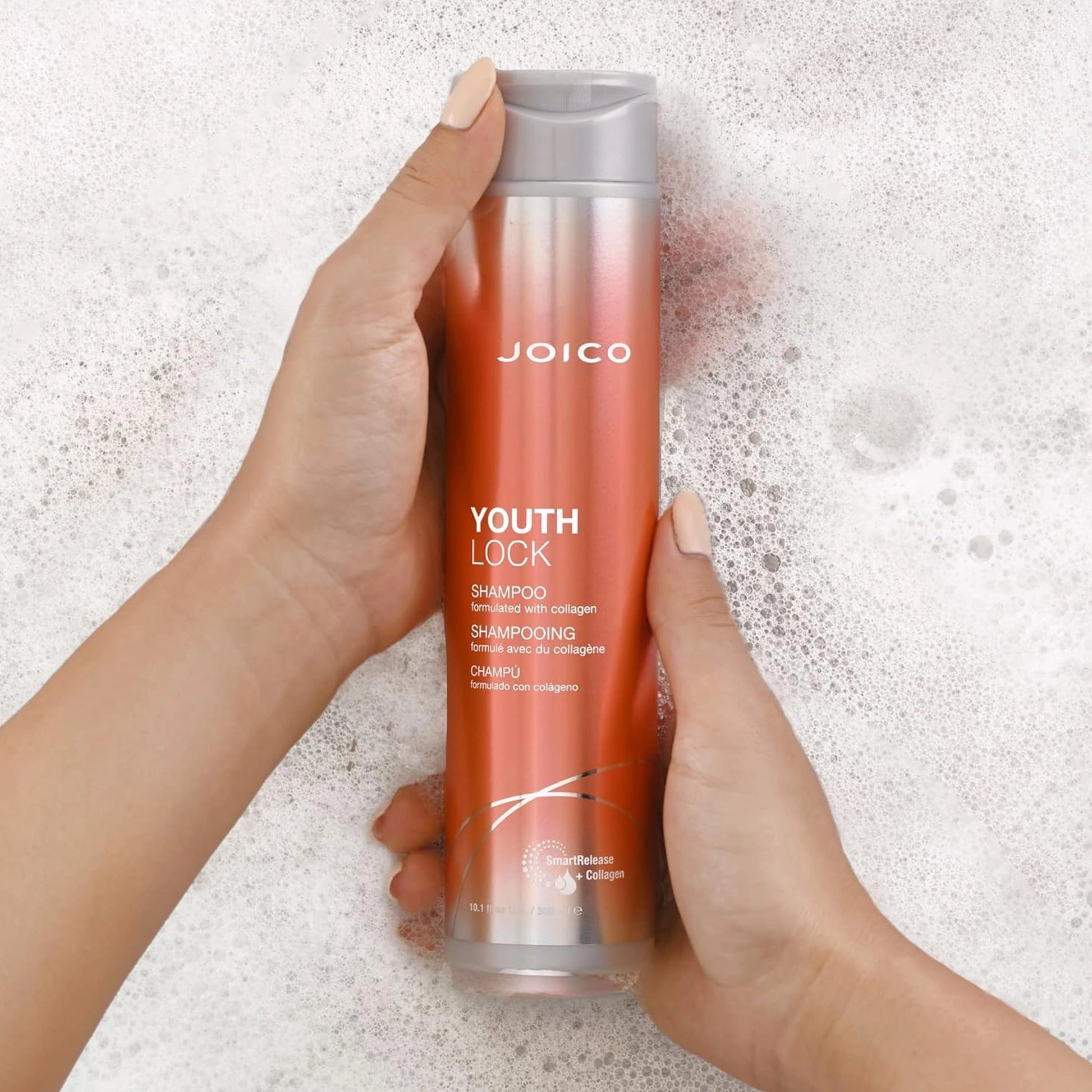 Joico YouthLock Collagen Shampoo for Ageing Hair is specially formulated with Collagen to gently cleanse mature, lifeless hair. It works to restore youthful volume, shine, and manageability, leaving hair looking revitalised and lustrous. This nourishing shampoo locks in essential hydration, helping to rejuvenate hair for a bouncy, healthy, and vibrant appearance.