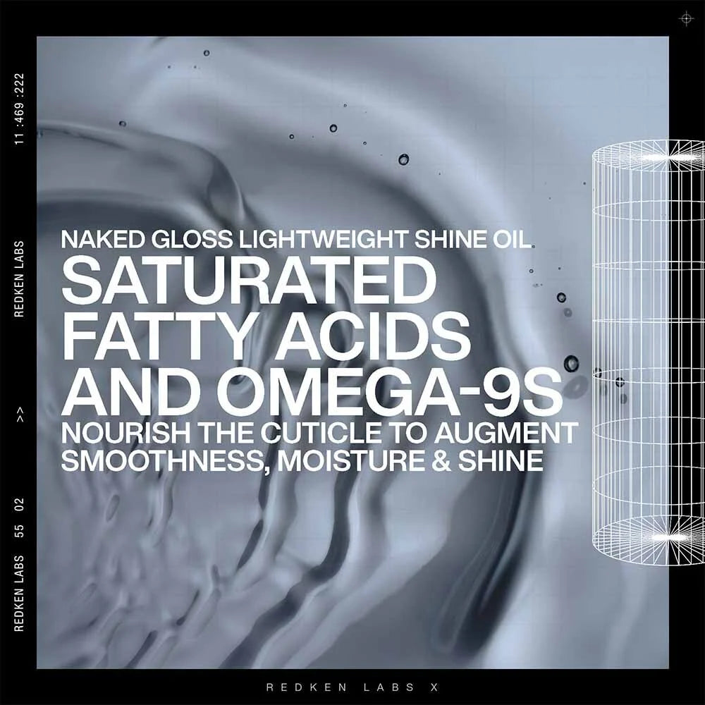 Formulated with an acidic pH and enriched with amino acids and conditioning agents, Naked Gloss helps to seal the cuticle, balance the hair's natural pH, and reduce frizz, leaving your hair silky, luminous, and revitalised. The lightweight hair oil melts into hair for zero heavy coating and greasy finish for a naked feel. The Lightweight hair oil protects hair from heat up to 230 degrees Celsius.