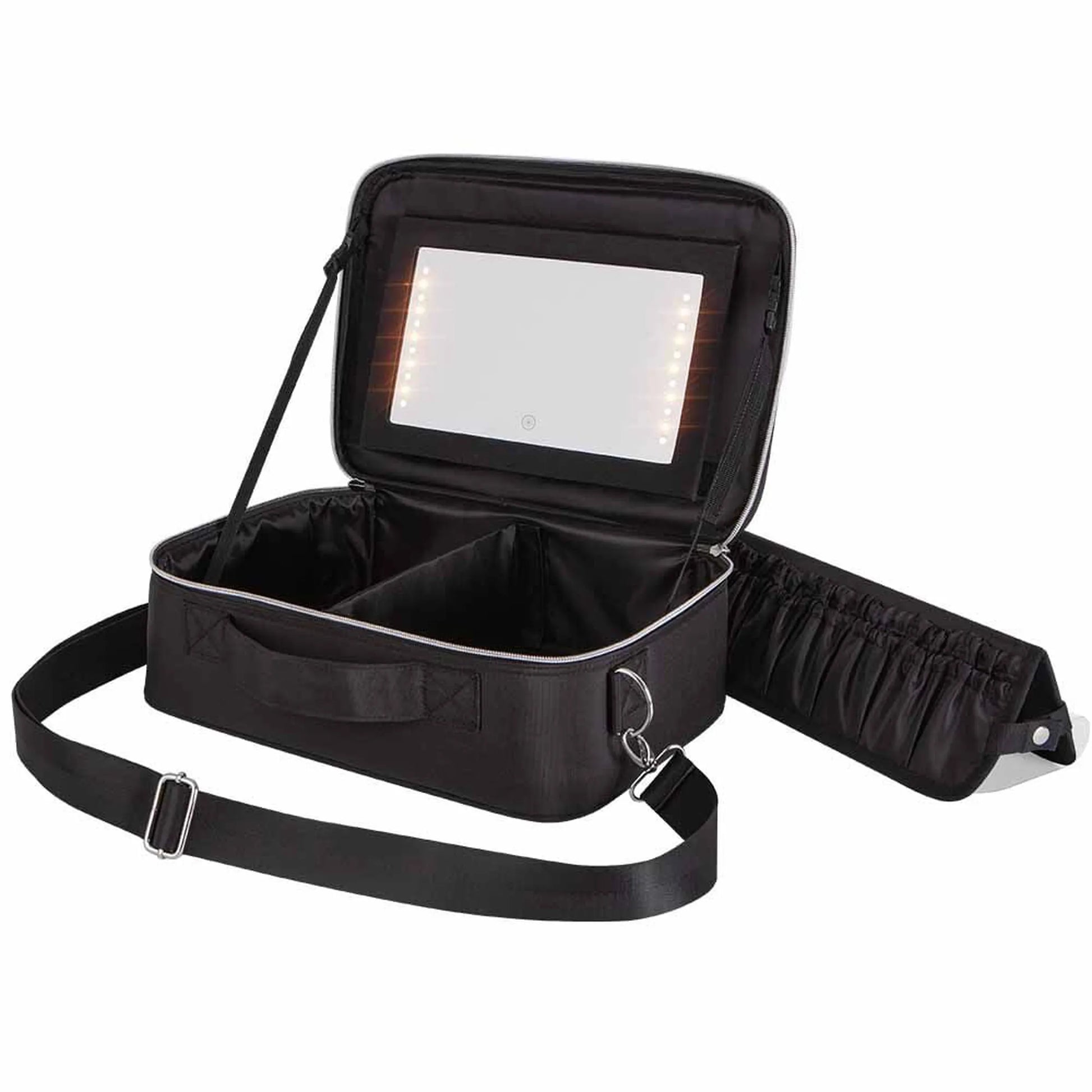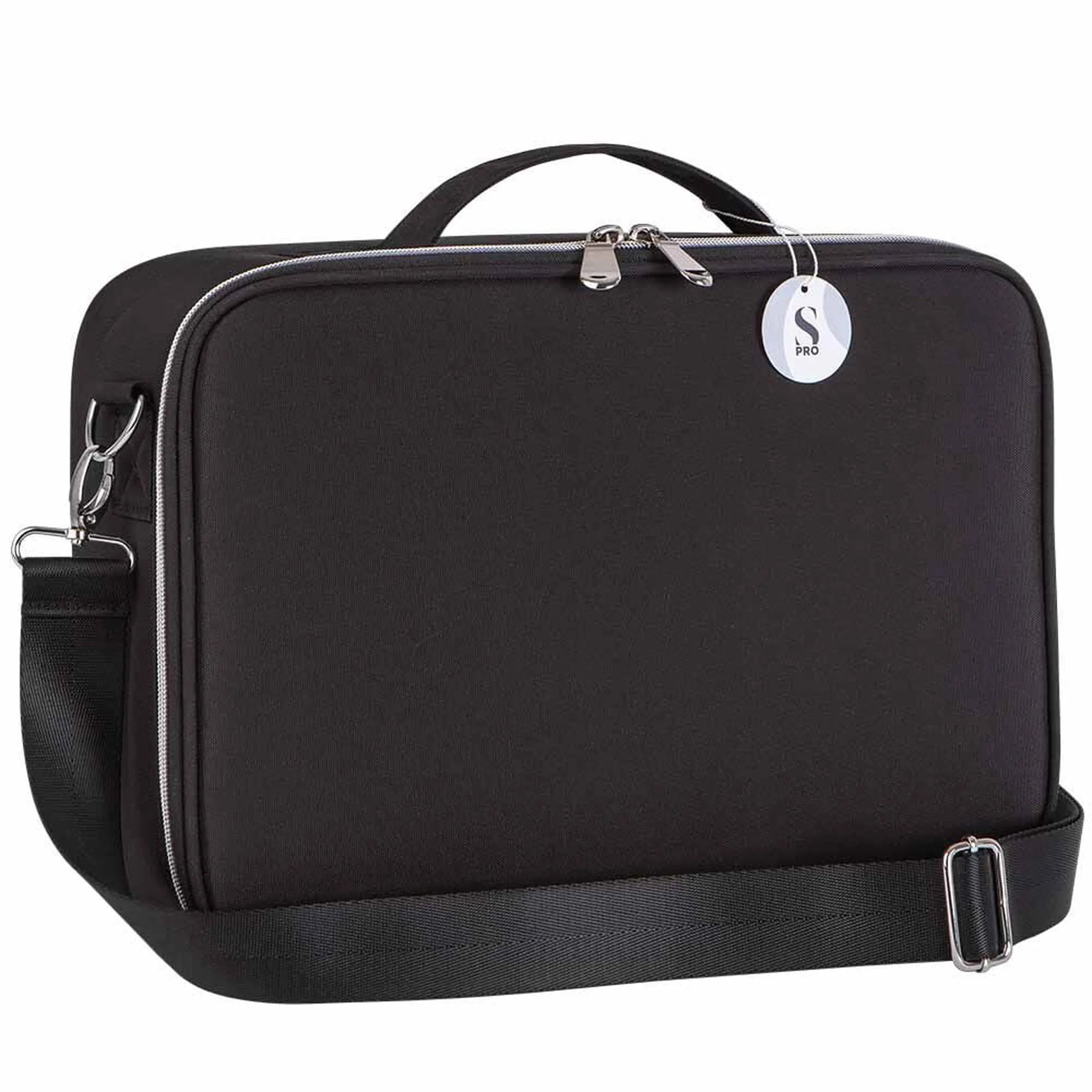 This multi-functional S-PRO Mirror Bag is a stylish and convenient bag to store various essentials such as a hairdryer, straightener, shampoo, and other accessories. The bag is made of tough nylon material with a useful rechargeable LED mirror inside the top cover. A long removable shoulder strap is included for added convenience, ensuring stability and a comfortable travel experience. The bag includes 2 large dividers allowing you to customise the internal space with your essentials.
